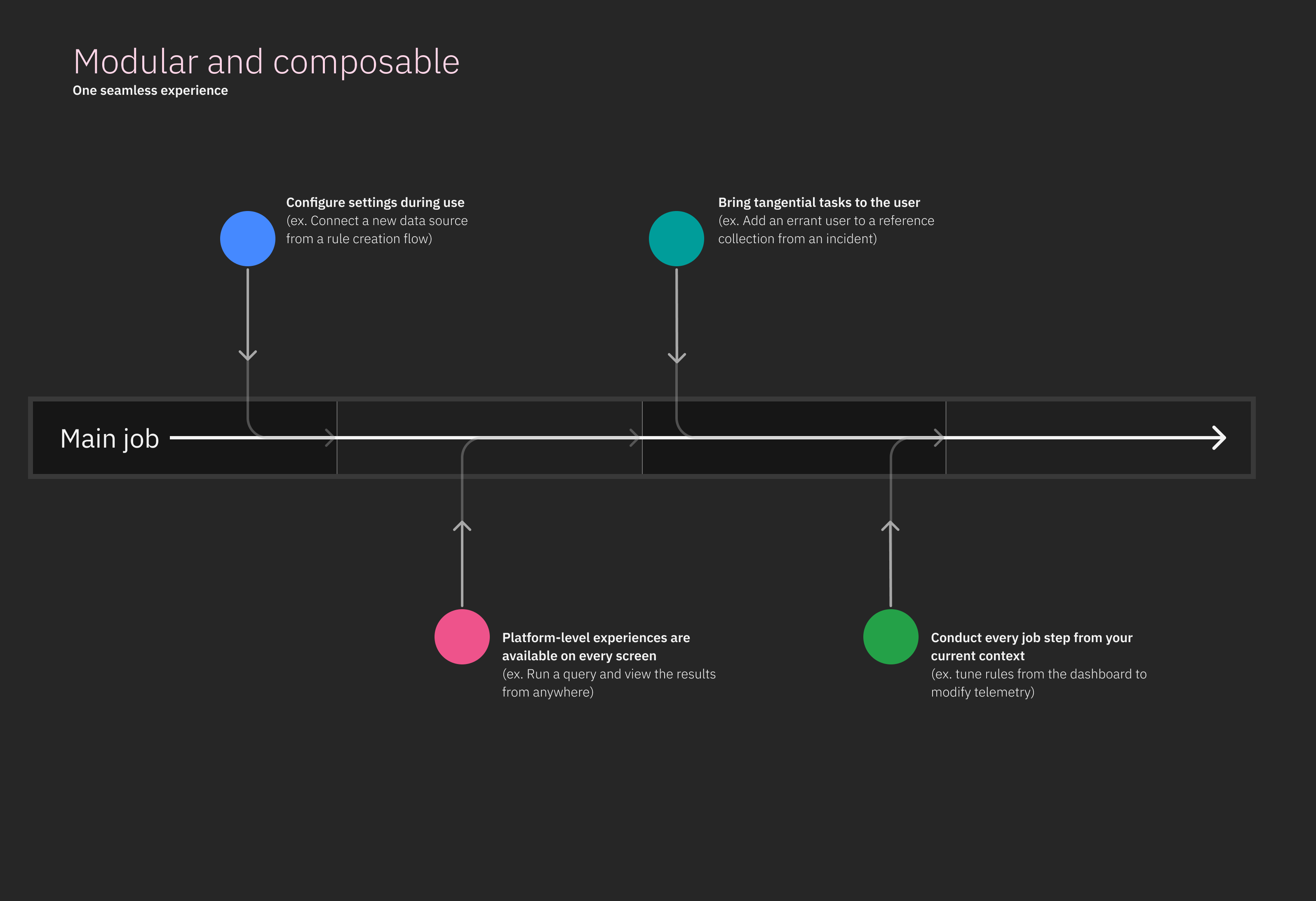 We have an opportunity to build composable, scalable experiences, unhindered by siloed teams and architectures that will enable a user to stay on task and effectively do their job.
